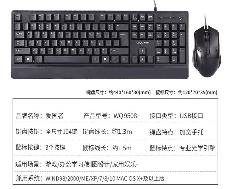 愛國者9508電腦鍵鼠套裝有線鍵盤鼠標(biāo)USB接口臺式筆記本辦公家用